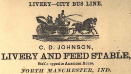 | can knock one off the shelf, you might win a Kewpie Doll. Another one had dishes and another, ashtrays. These were for the big boys to impress their girlfriends with what good arms they had. Once in a while one of them would succeed in knocking one off the shelf. Oh look, something new. Throw the ball at a bulls-eye target. A good hit and up in the balcony a little pen would open and a small pig would come sliding down to the ground on a slide. There was a big crowd of people standing around watching this. There were all kinds of tents or stands, barkers selling everything from kitchenware to magic tricks to snake oil. The building our mothers were working their way to was the big, white frame building, just to the west of the grandstand, The Memorial Exhibition Building. This was the ladies' section of the fair. Here they showed off their good work of home canning, dress-making, food demonstrations and the latest household gadgets. It seemed like we spent too much time in there for a seven year-old boy. Once outside we had a pink lemonade from a stand and over by the west fence was a row of HIS and HERS outhouses. I don't believe they had any connection to the city sewer lines. Just north of that was the poultry tent with chickens, ducks, geese and then the north end of the fair grounds the horse barns on Ninth Street. These were for the beautiful trotters and pacers the race horses that excited the male attendees of the fair. I hope this gives you residents who live at the Peabody Home some idea of what took place on these grounds before it all ended at the 1929 fair which was a flop as a dispute arose over the price of rental and all the concessionaires walked out. The only thing at the fair that year was a rodeo show in front of the grandstand. Oh! I could talk about other events that took place during the summer on your grounds. Automobile racing with souped up Model T engines, local talent productions in front of the grandstand. How about the House of David baseball games with the North Manchester Giants and the year they had the brawl in which bats and skulls were fractured out there in the infield. How about those early Twenties when the KKK had their big parade downtown in North Manchester and then the hundred or so | ||